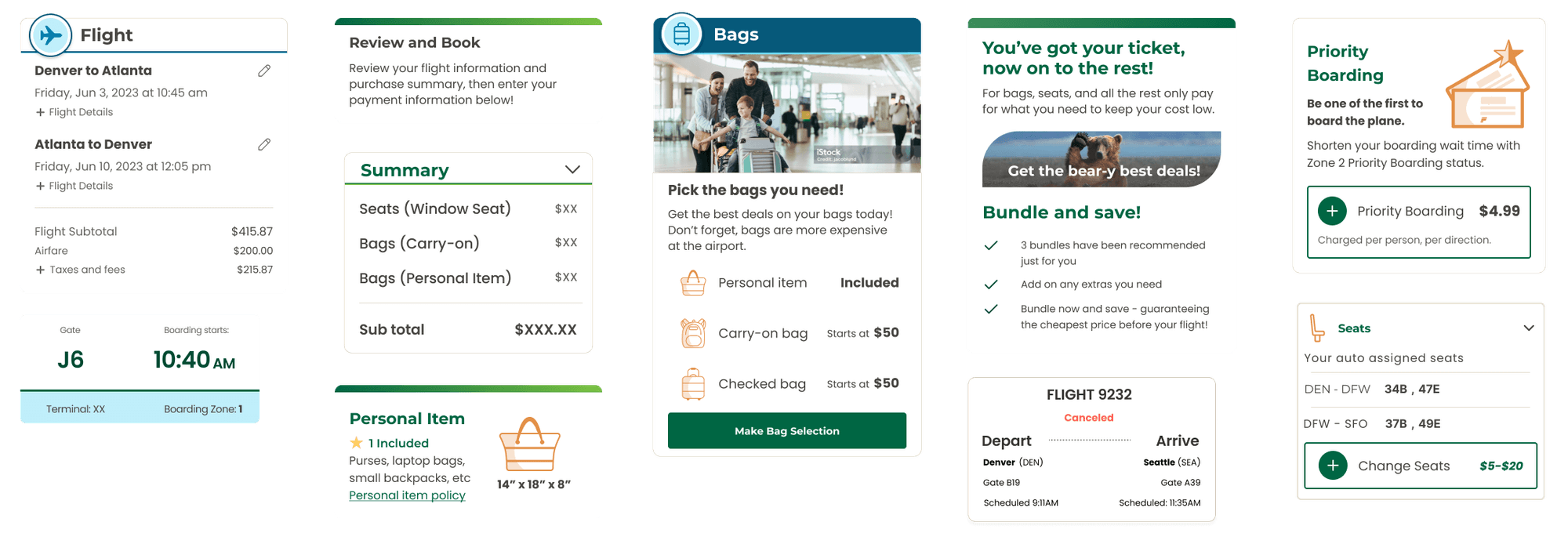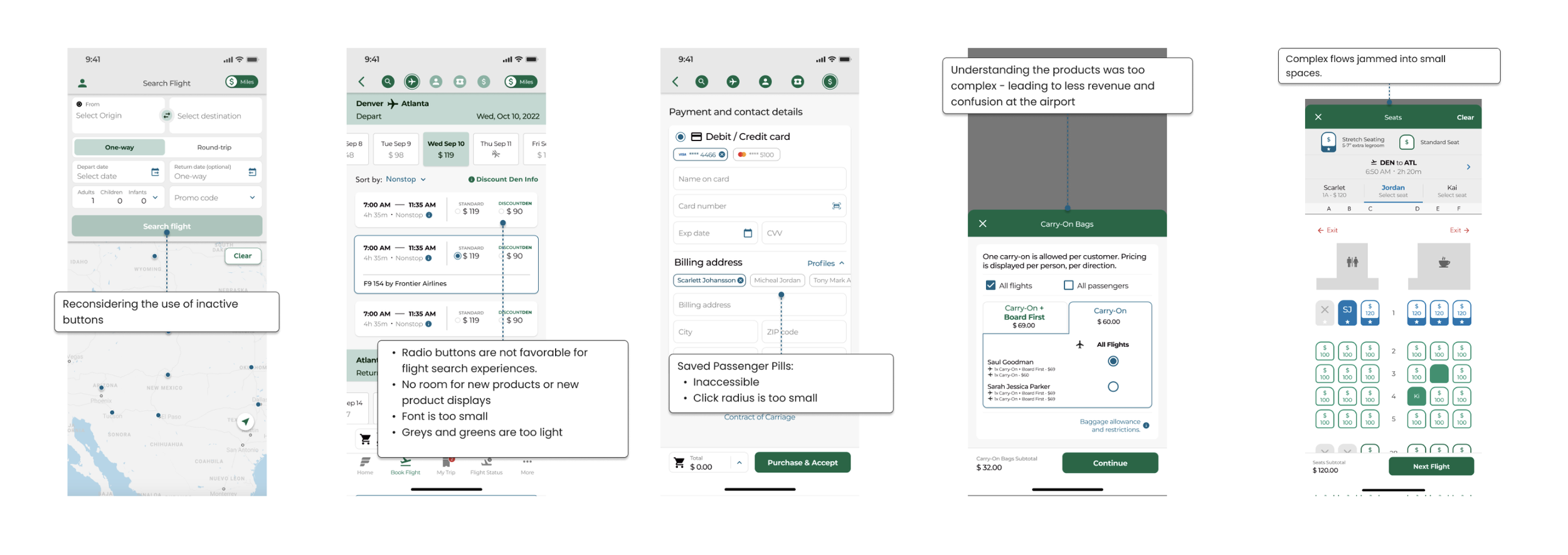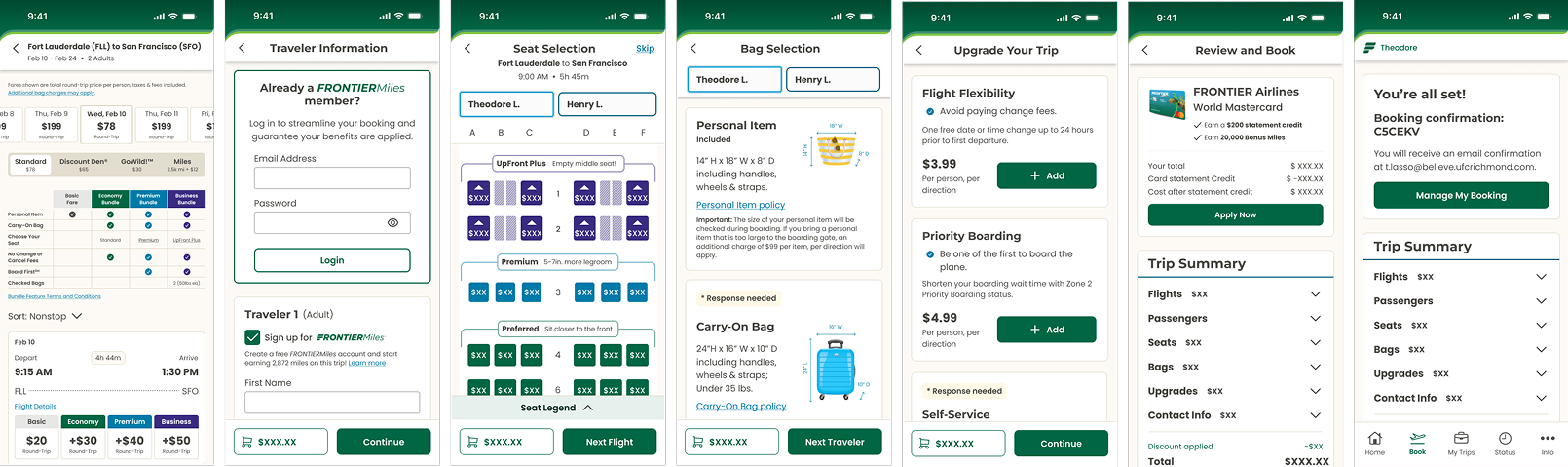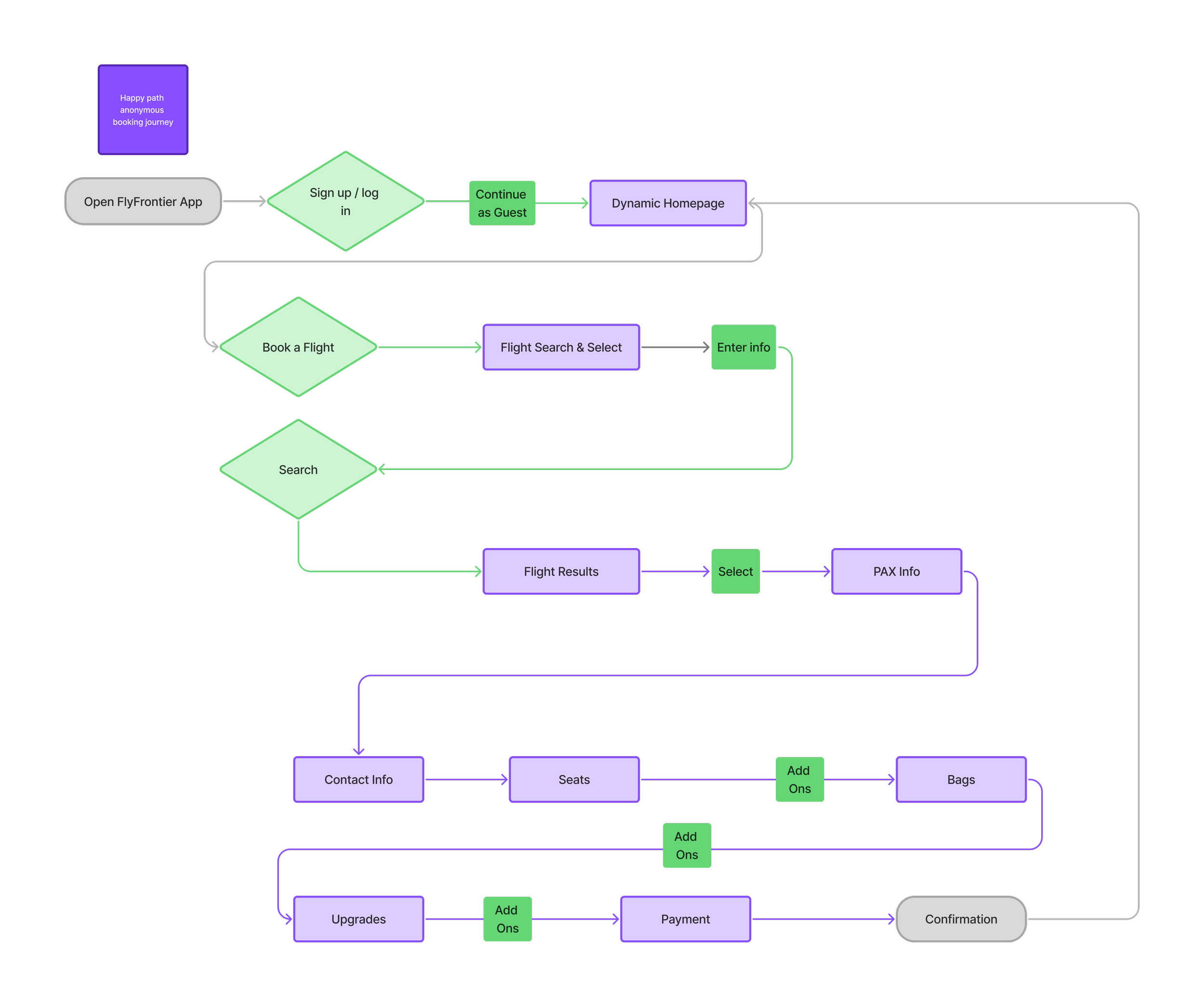 The most important user journeys to our Frontier customers were the booking flow and the check-in journey. While I got the opportunity to work on every journey, I focused most on the mobile booking flow, and later the web booking flow.
