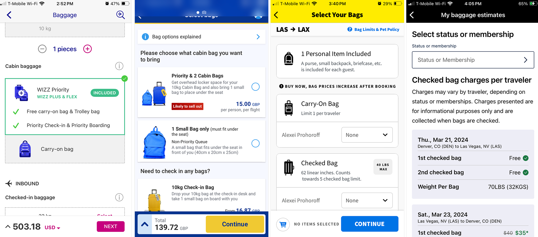 Note: These are some of the oldest screenshots we have, and they do not represent the full range of airlines we have examined overall.