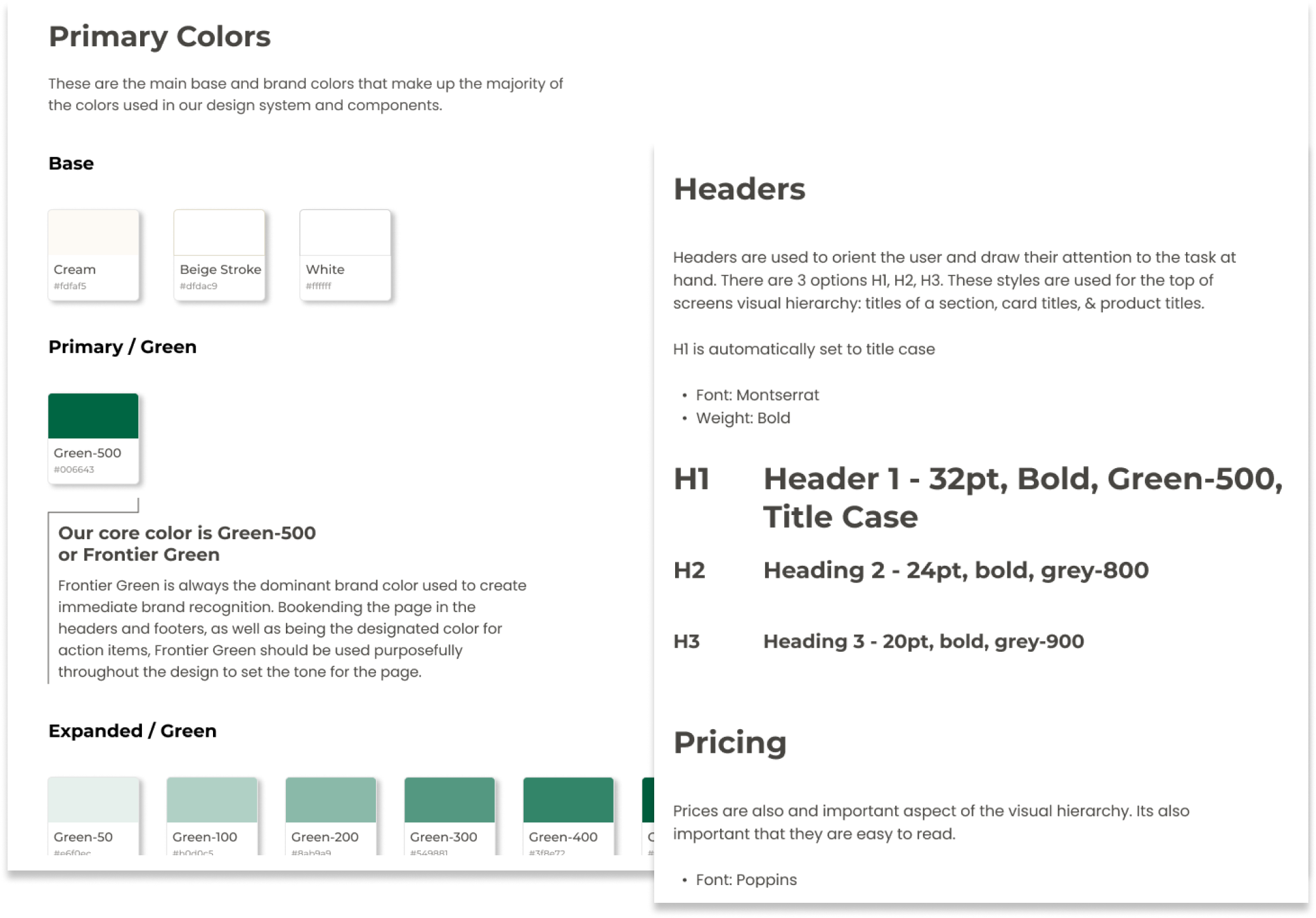 From our audits of our current work, we noticed several inconsistencies page-to-page within the same journey, and from designer to designer. There was no cohesive typography, fonts, or components. Nothing was componentized, and our work was slow and confusing, often times many conversations involved “Wait, that’s not what that button looks like on my page…”